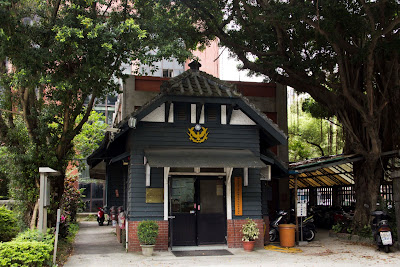 建於1925年,為典型日式警衛亭的建築形式,空間不大,後方緊鄰理髮部與心理輔導中心。民國80、90年代,飼養院犬來福、阿花、小白、福妹於後方停車棚,以協助駐警隊守護法學院的安全,成為許多校友的共同回憶。